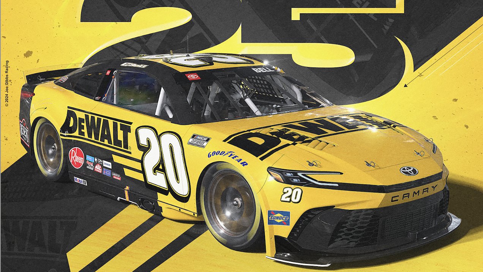 2025 No 20 Joe Gibbs Racing Christopher Bell DEWALT Paint Scheme TobyChristie