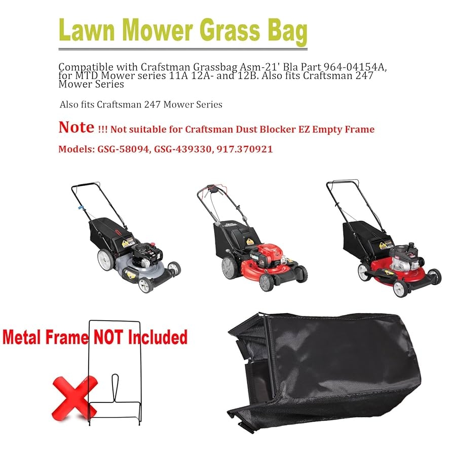 Amazon 964 04154A Lawn Mower Grass Bag Replacement For MTD Craftsman Lawn Mower Bag 964 04154 Compatible With 21 Mower Series 11A And 12A Without Grass Catcher Frame Patio Lawn Garden