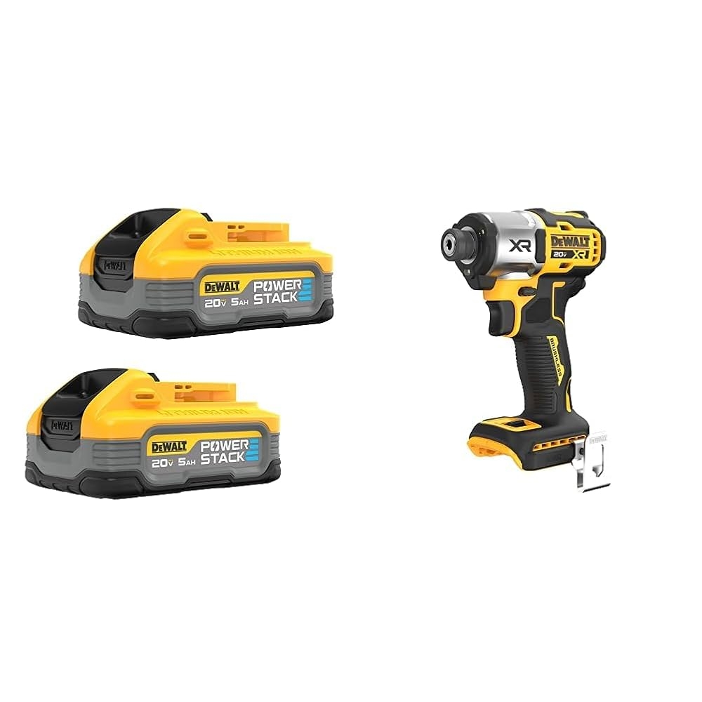 Amazon DEWALT Powerstack 20V MAX Battery Rechargeable 5Ah Lithium Ion 2 Pack DCBP520 2 U0026 20V MAX XR Impact Driver Brushless 1 4