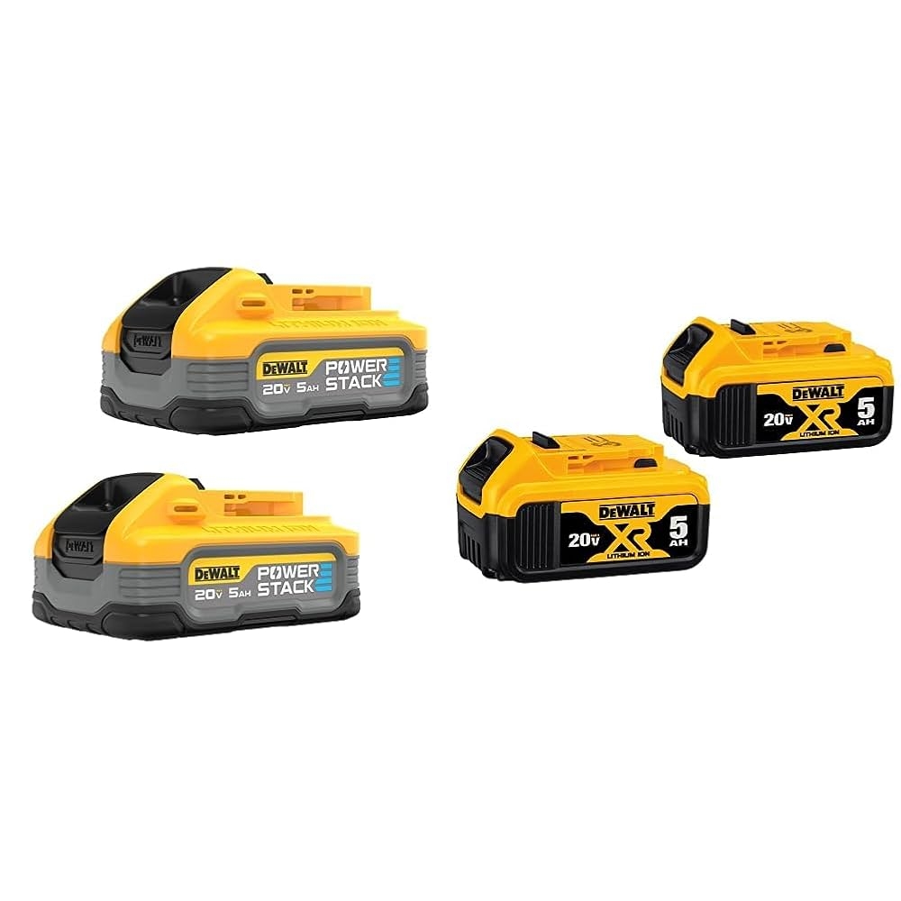 Amazon DEWALT Powerstack 20V MAX Battery Rechargeable 5Ah Lithium Ion 2 Pack DCBP520 2 20V MAX XR Battery 5 Ah 2 Pack DCB205 2 Tools Home Improvement