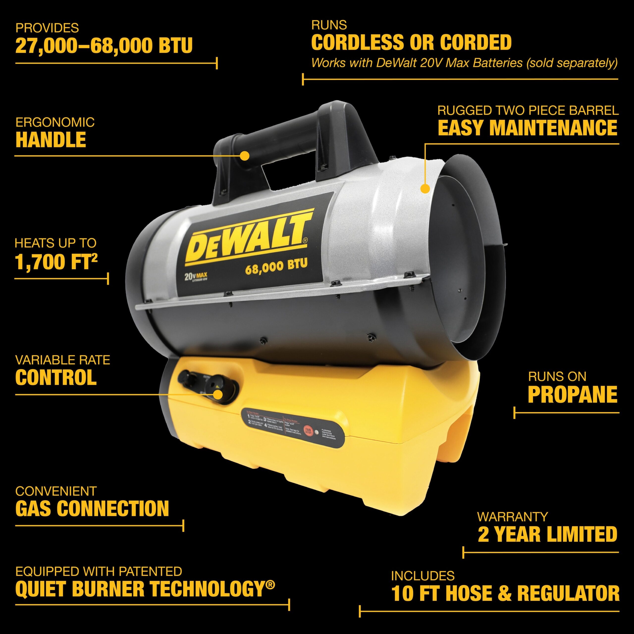 DEWALT 68000 BTU Outdoor Portable Forced Air Propane Heater DXH70CFAVH At Lowes