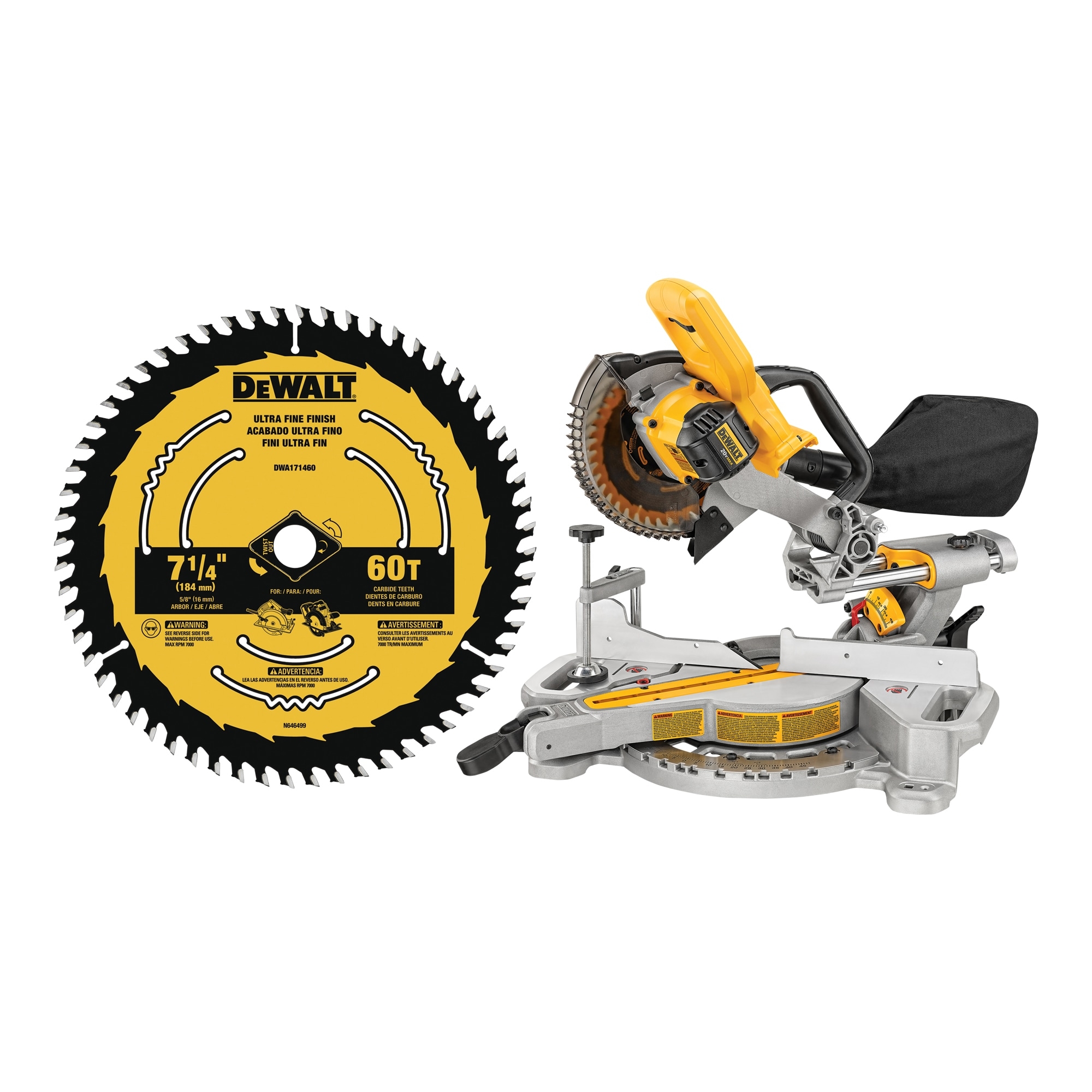Shop DEWALT 7 1 4 in 20 Volt Max Single Bevel Sliding Compound Cordless Miter Saw 7 1 4 in 60 Tooth Tungsten Carbide Tipped Steel Circular Saw Blade At Lowes