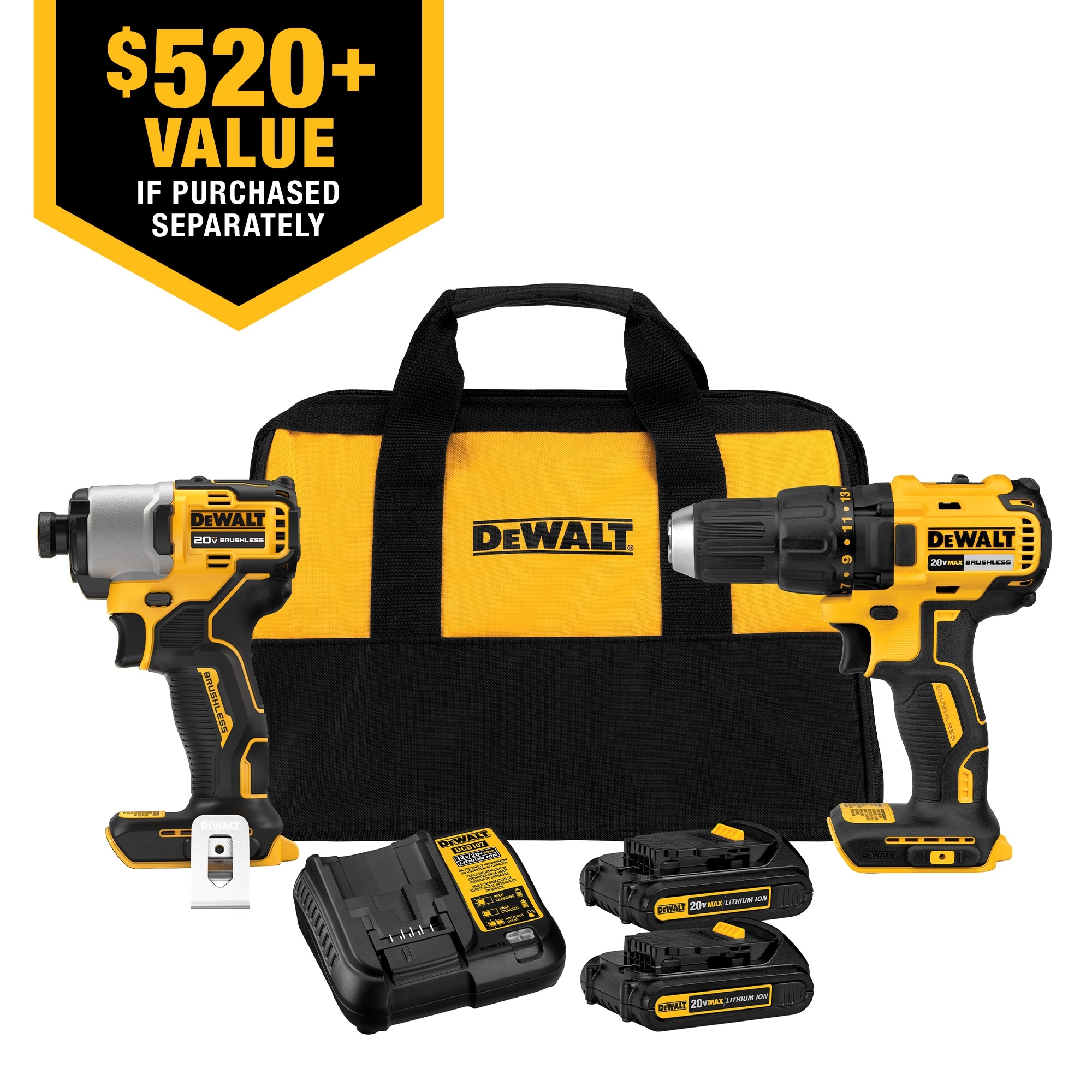 DEWALT 20V MAX Compact Brushless Drill Driver And Impact Kit With 2 Batteries Charger And Soft Bag DCK275C2 At Lowes