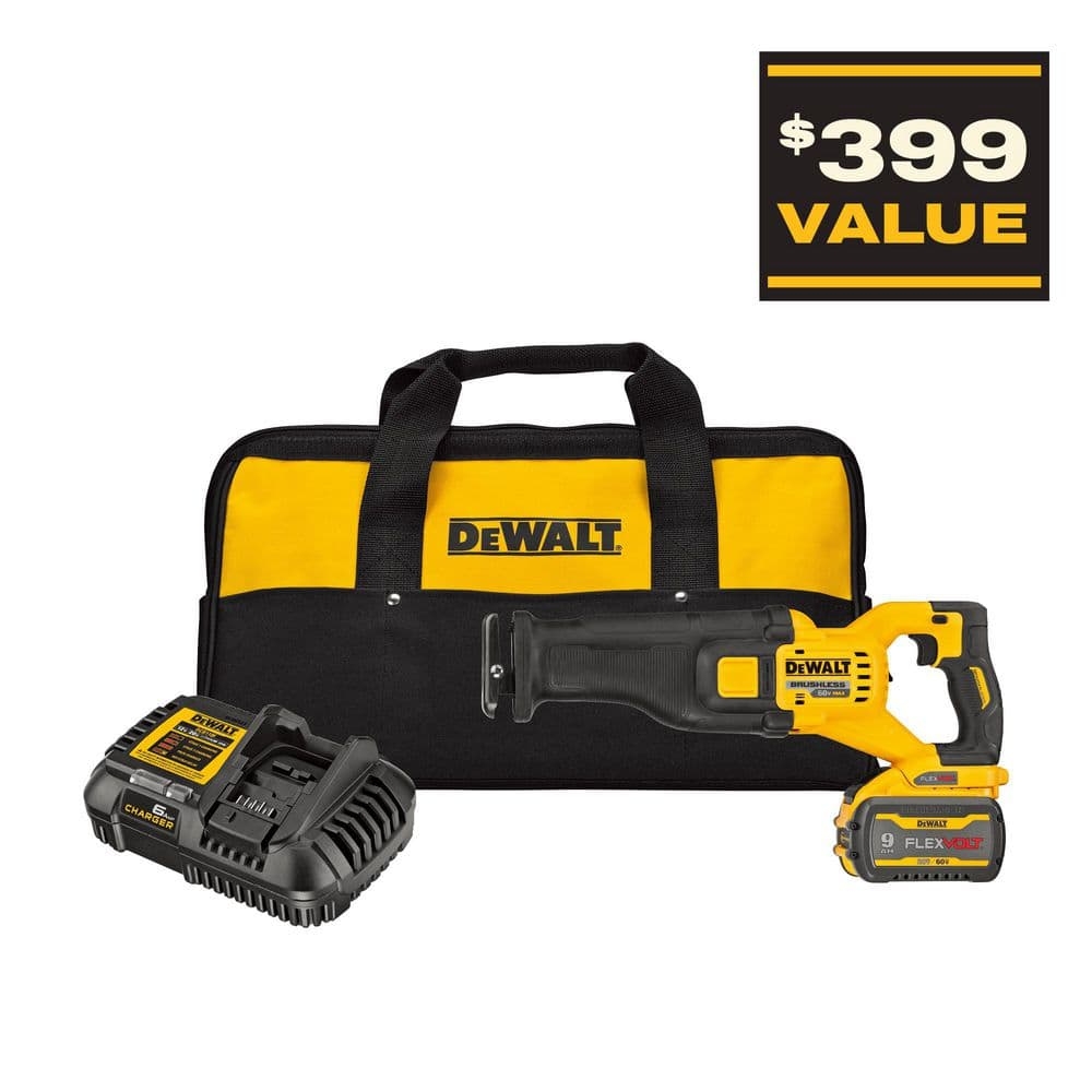 DEWALT FLEXVOLT 60 Volt MAX Li Ion Cordless Brushless Reciprocating Saw With FLEXVOLT 20V 60V Battery Pack 9 0 Ah Tool Only DCS389BWDCB609 The