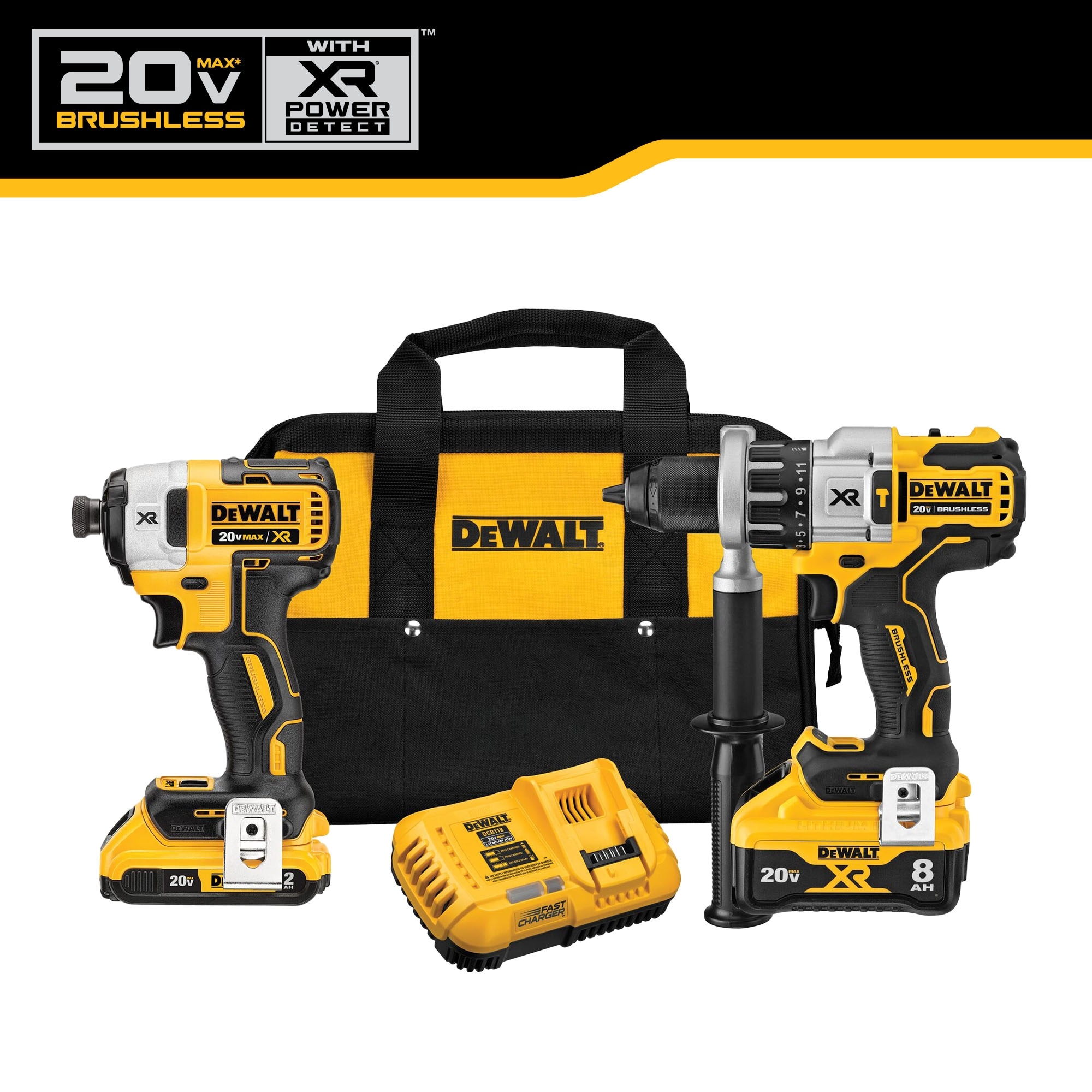 DEWALT XR POWER DETECT 2 Tool 20 Volt Max Brushless Power Tool Combo Kit With Soft Case 2 Batteries And Charger Included DCK299D1W1 At Lowes