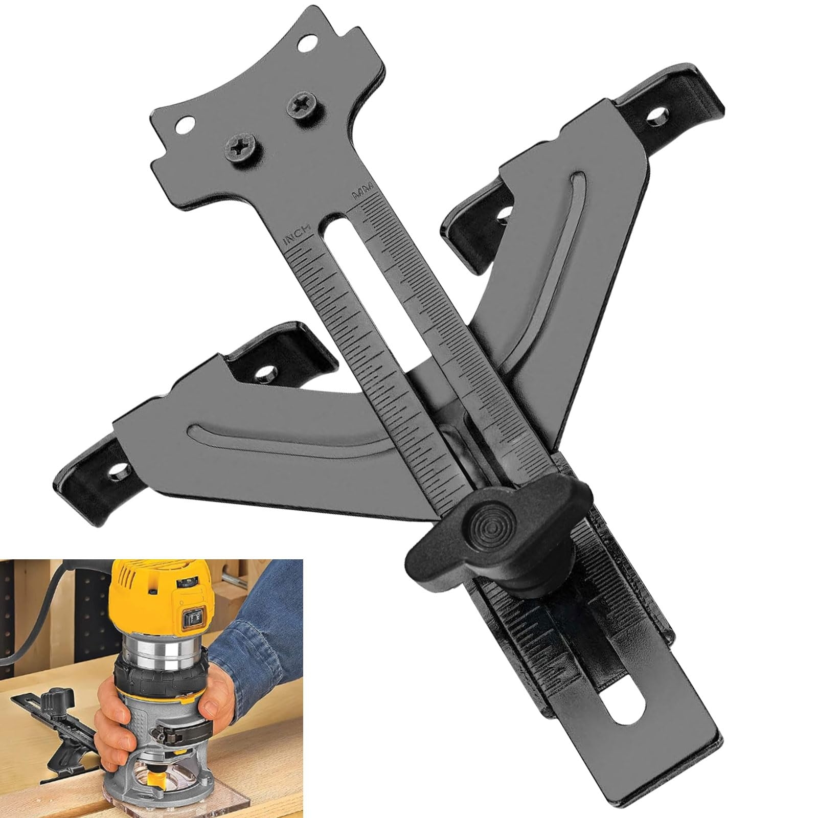 Pair your DeWalt router with the edge guide for seamless precision and accuracy. The guide helps you achieve clean, straight edges on your woodworking projects, making it ideal for cabinetry, furniture making, and more. With the DeWalt router edge guide, you can take your craftsmanship to the next level.