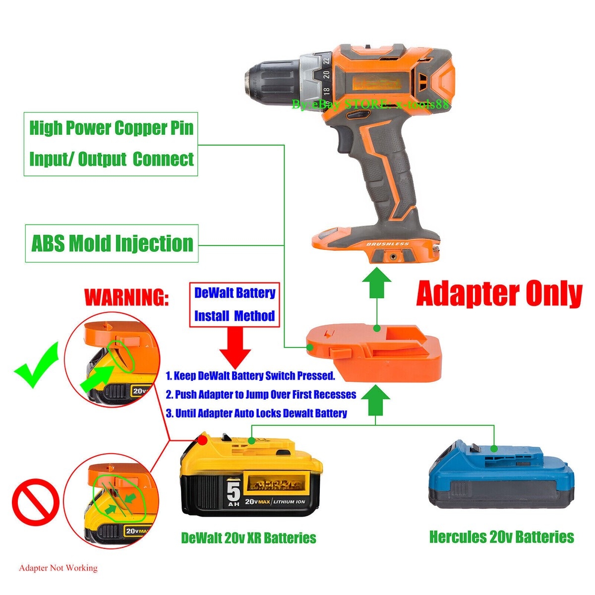 New Adapter For Hercules 20V Li ion Battery To For Dewalt 20V Cordless Tools US EBay