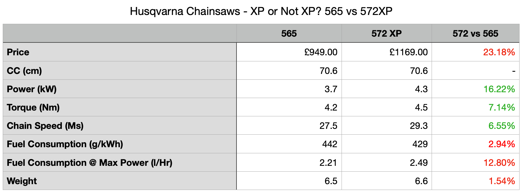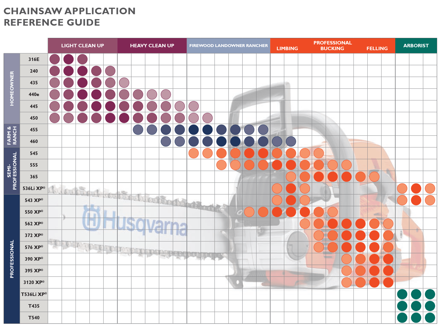 husqvarna chainsaw comparison chart