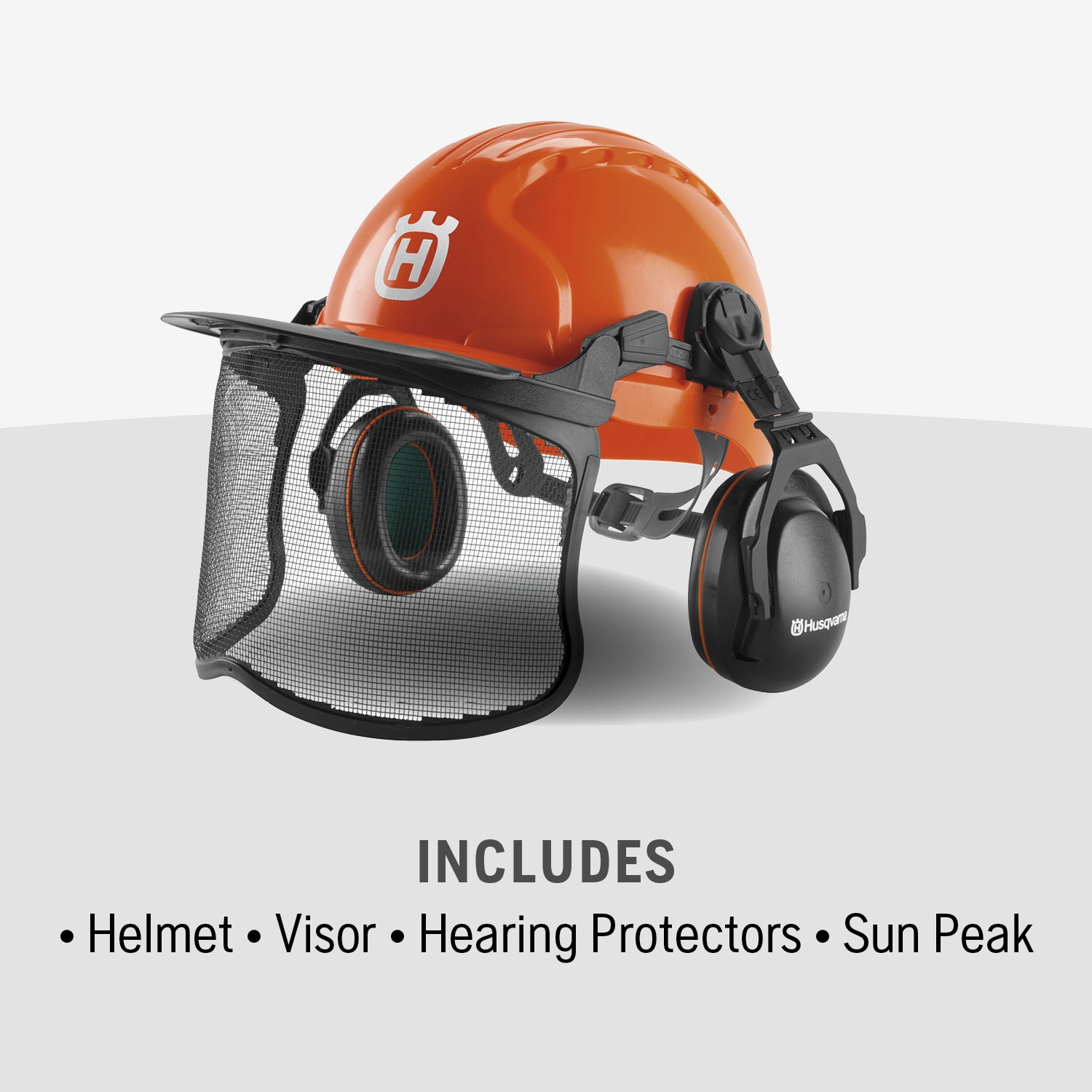 Amazon Husqvarna 592752701 Chainsaw Helmet With Metal Mesh Face Shield Adjustable Ear Muffs For Hearing Protection And Sun Peak HDPE Forestry Helmet Shell Orange Tools Home Improvement