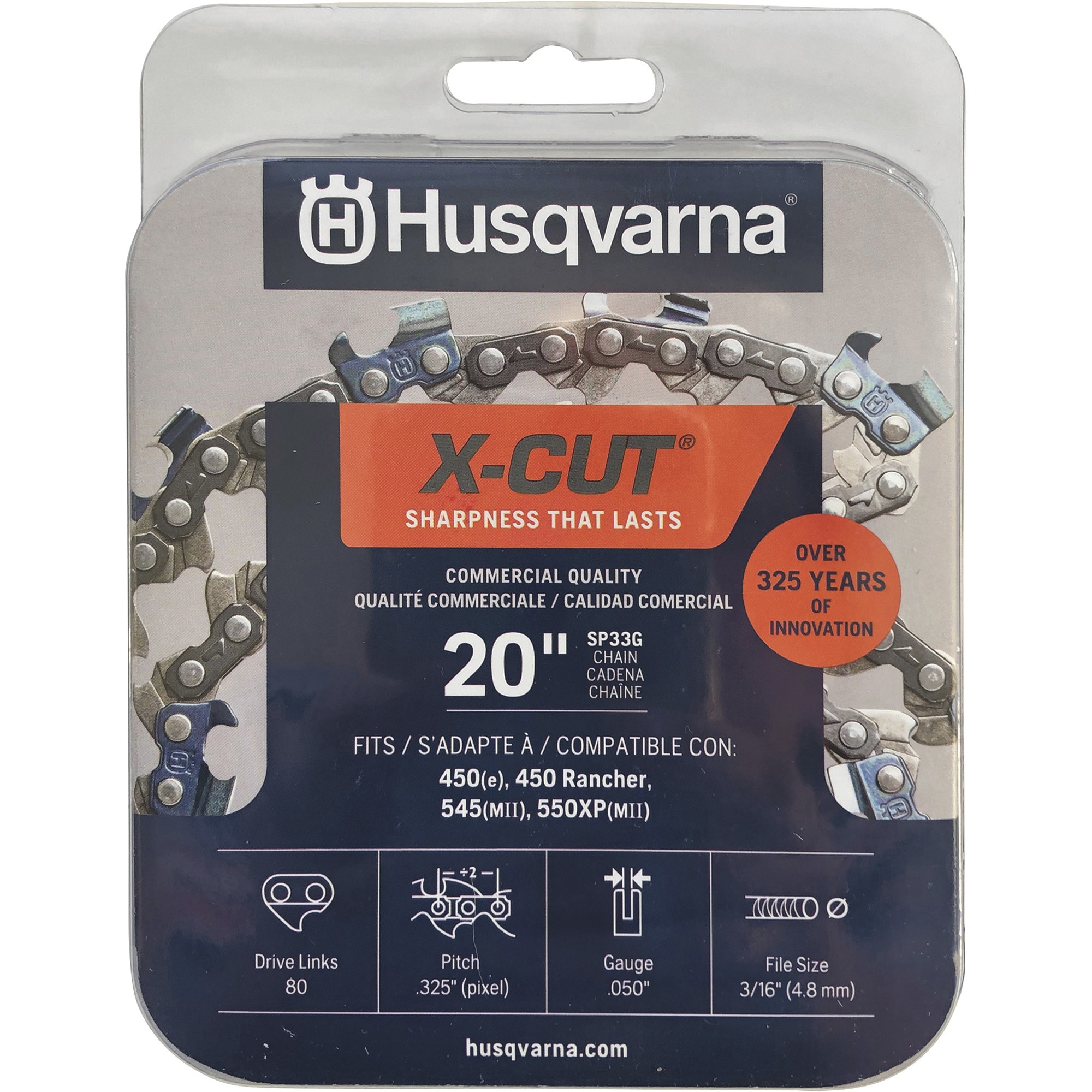 Amazon 3 Pack 20 Inch Chainsaw Chains 80 Drive Links 325 Pitch 050 Gauge Full Chisel Fit Husqvarna 450 Rancher 460 Rancher 445E 450E 545 Mark II 550 XP MII 745 H30 80 Low Vibration