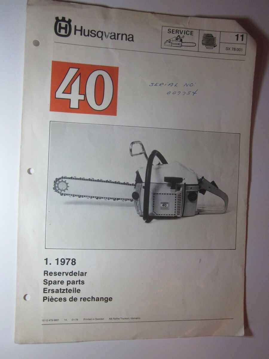 1978 Husqvarna Chainsaw Model 40 Service Parts Manual SX 78 001 EBay
