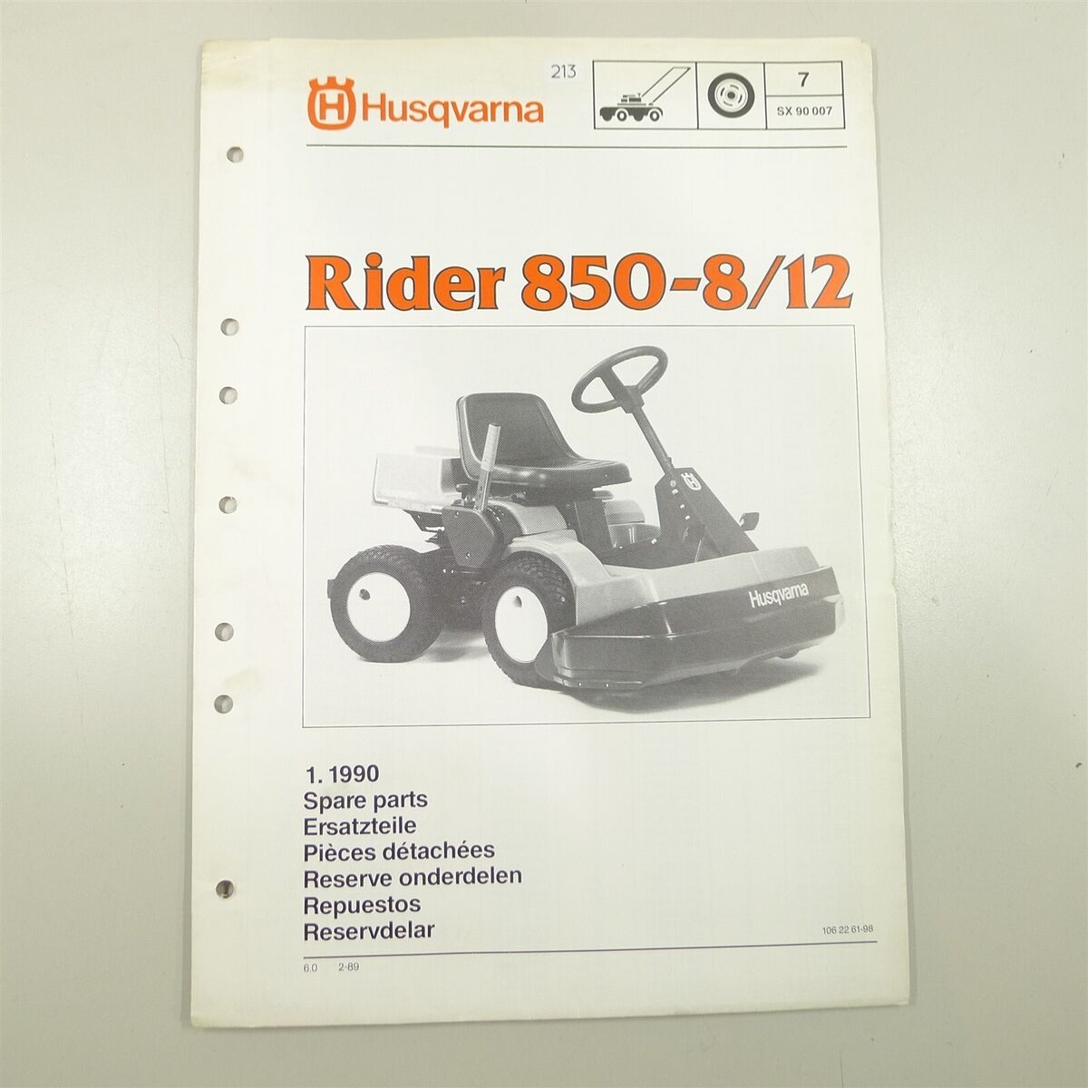 OEM Husqvarna Rider 850 8 12 Orig Riding Mower Illustrated Parts List IPL 1990 EBay