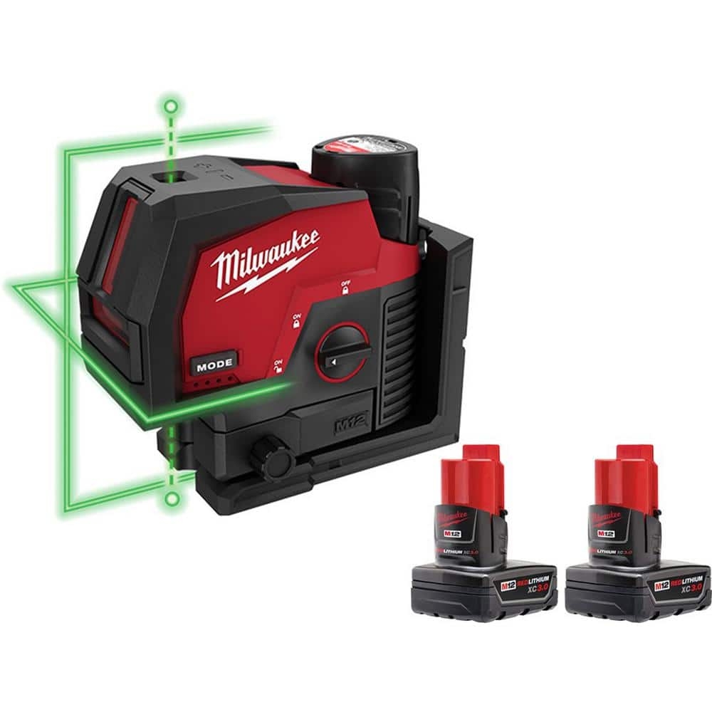 Milwaukee M12 12 Volt Lithium Ion Cordless Green 125 Ft Cross Line And Plumb Points Laser Level Kit With 3 Batteries 3622 21 48 11 2412 The Home Depot
