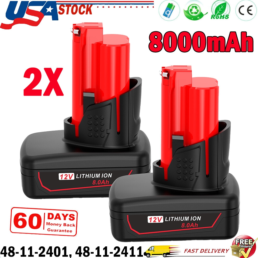 2Pack 8 0Ah Battery For Milwaukee For M12 LITHIUM Extended Capacity 48 11 2460 EBay