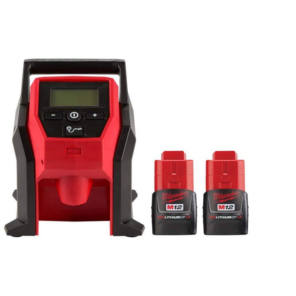 Milwaukee M12 12 Volt Electric Portable Inflator Tool Only And M12 12V 1 5 Ah Lithium Ion Compact Battery Pack 2 Pack 2475 20 48 11 2411 The Home Depot