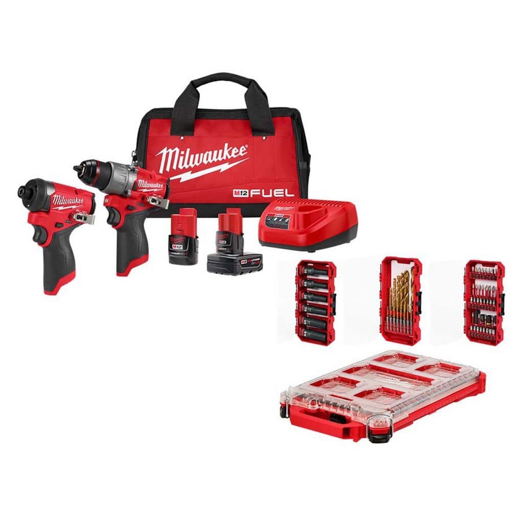 Milwaukee M12 FUEL 12 Volt Li Ion Brushless Cordless Hammer Drill Impact Driver Combo Kit W 2 Batteries Bag Bit Set 60 Pc 3497 22 48 32 5162 The Home Depot