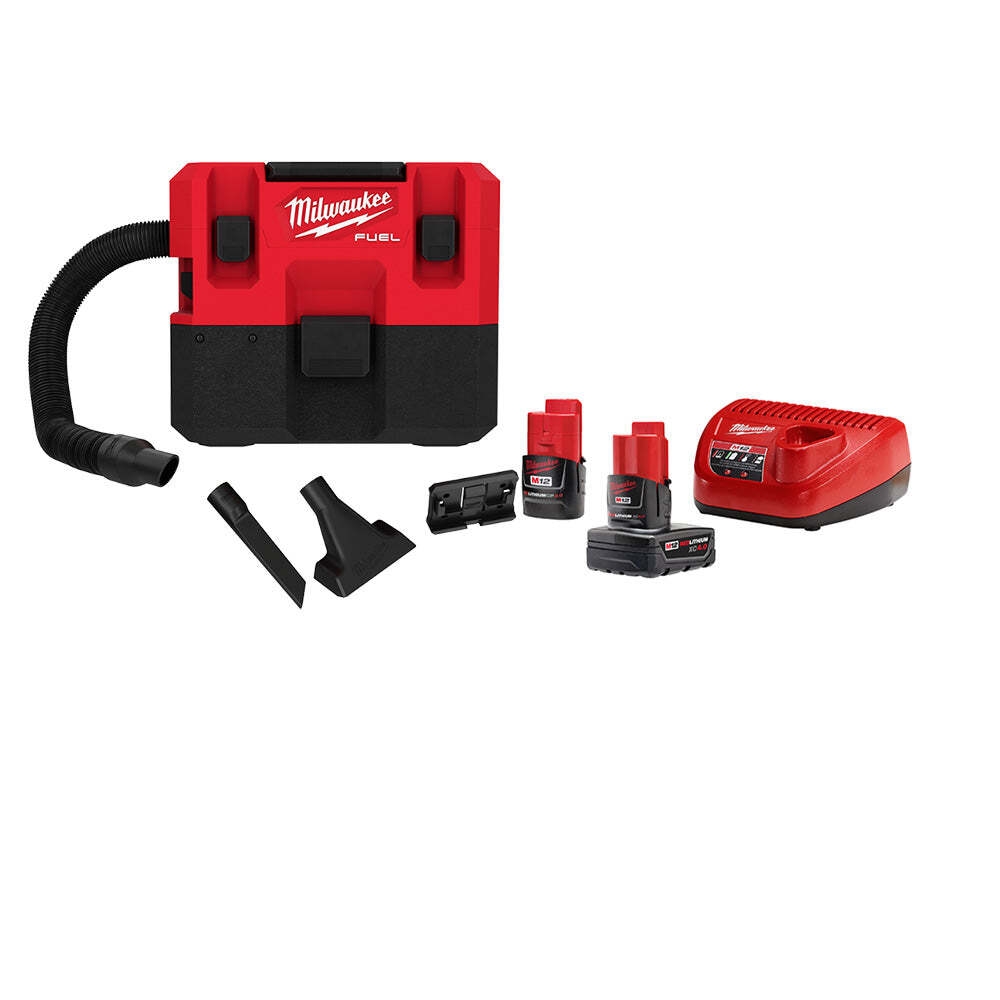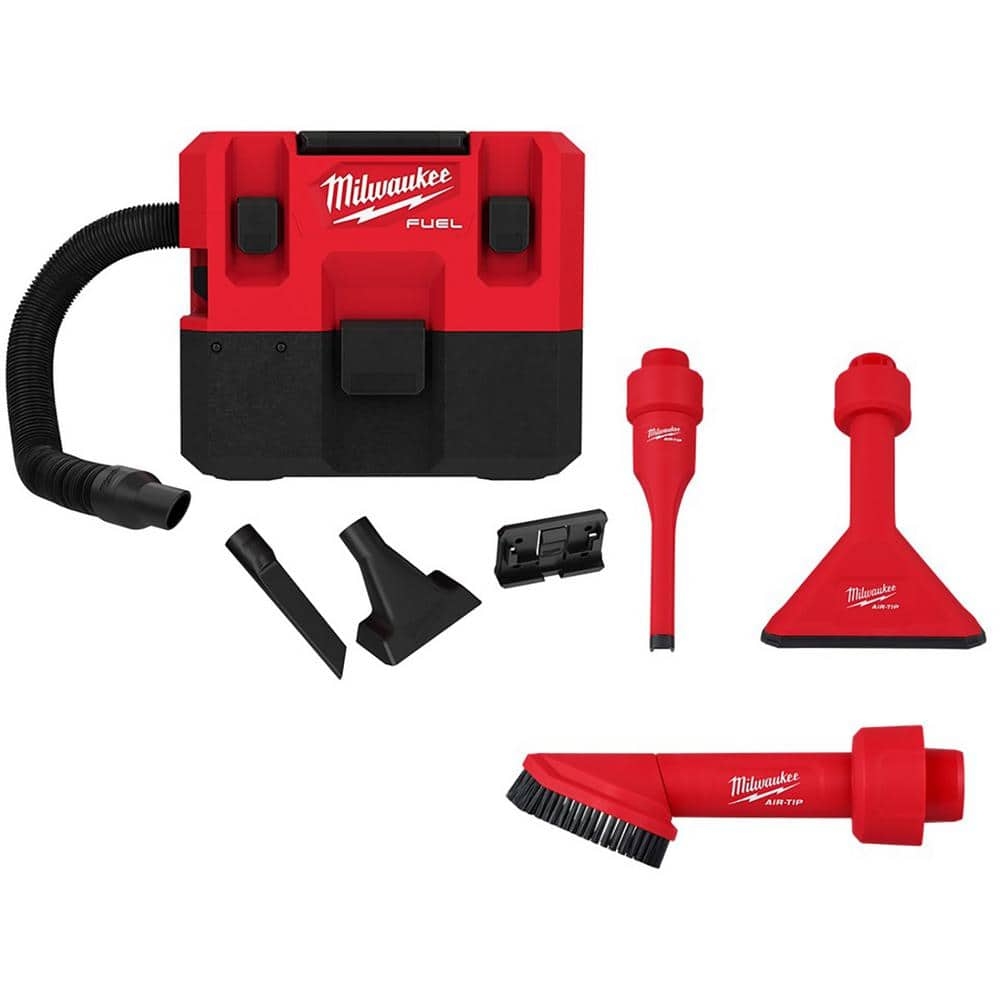 Milwaukee M12 FUEL Cordless 1 6 Gal Wet Dry Vacuum With AIR TIP 1 1 4 In 2 1 2 In 3 Piece Crevice Nozzle And Brush Kit 0960 20 49 90 2034 49 90 2021 The Home Depot