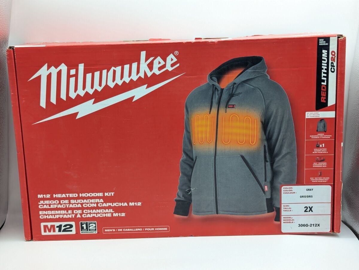 Milwaukee M12 Heated Hoodie Kit 306G 212X XX Large Gray W Battery Charger 45242659258 EBay