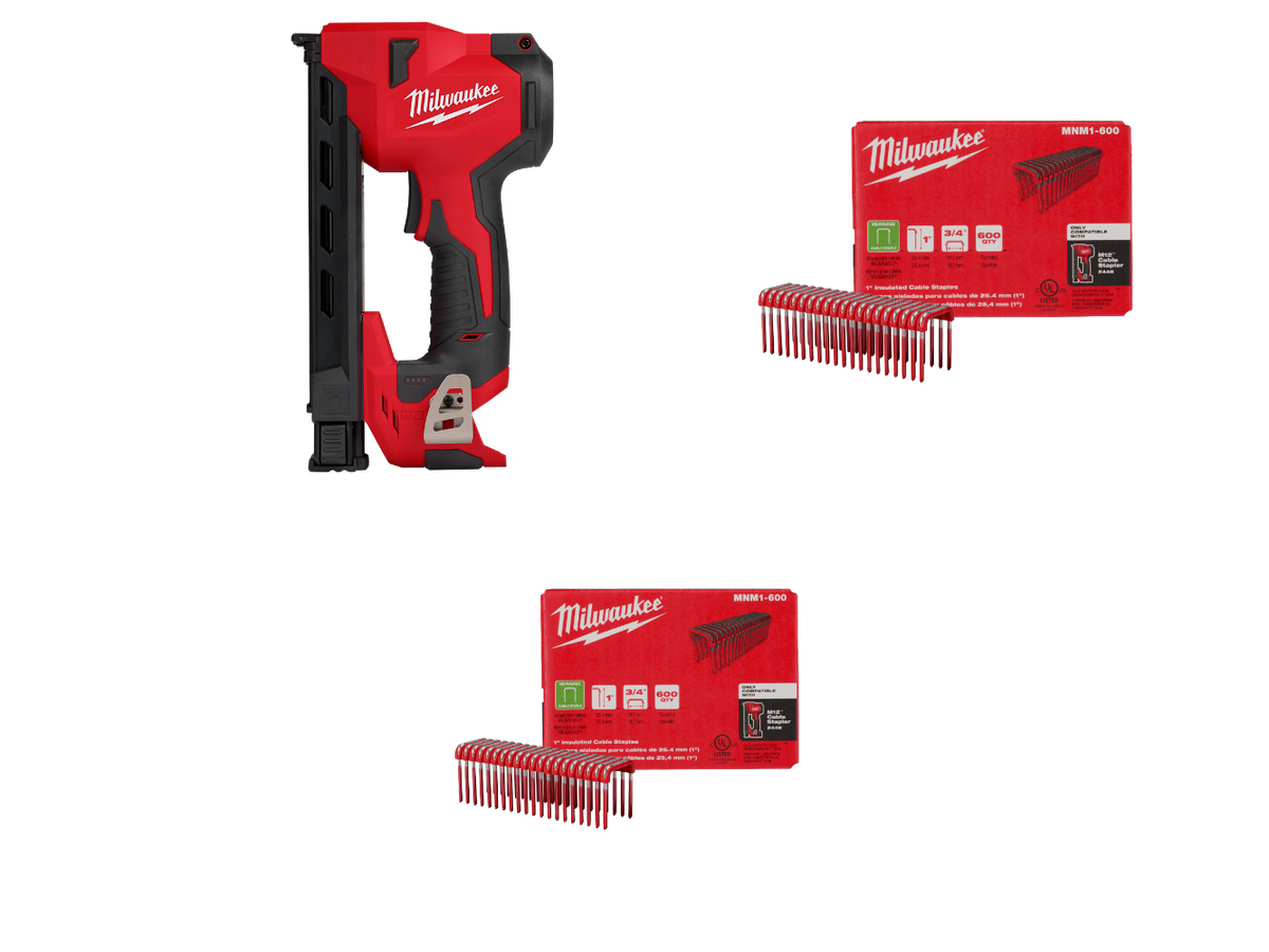 Milwaukee M12 12 Volt Lithium Ion Cordless Cable Stapler W 1 In Insulated Cable Staples 600 Per Box 2 Pack 2448 20 MNM1 600X2 The Home Depot