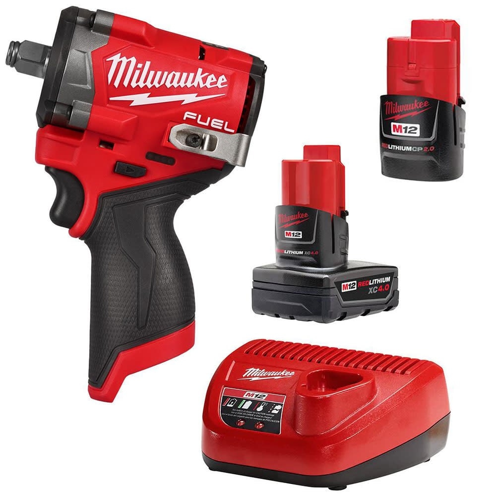Milwaukee M12 FUEL Stubby 1 2 Impact Wrench With M12 Starter Kit 2563 20 48 59 2424 Acme Tools
