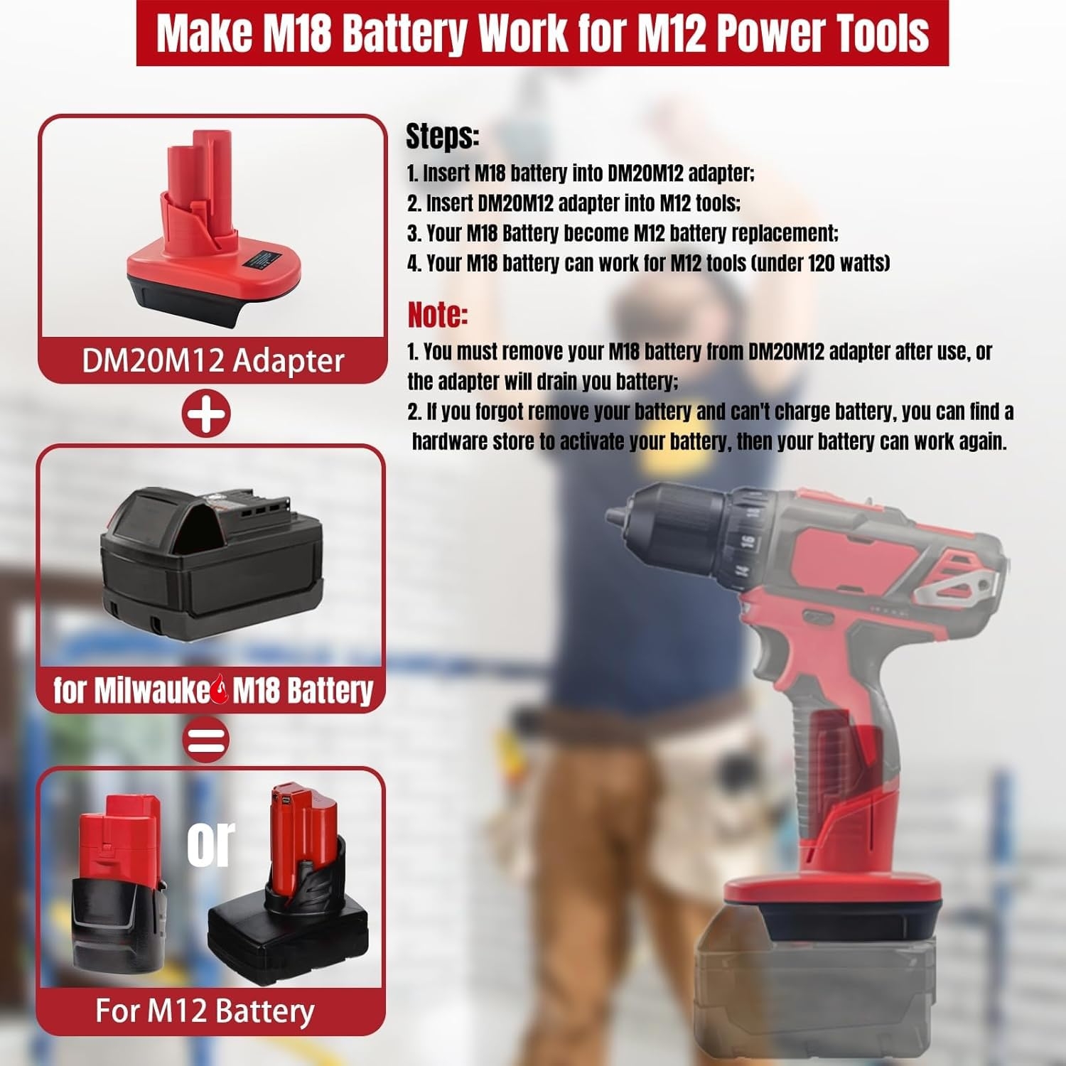 Amazon For M18 To For M12 Battery Adapter Convert For Milwaukee For M18 18V Battery To For M12 12V Battery Replacement Power For Milwaukee For M12 Tools Tools Home Improvement