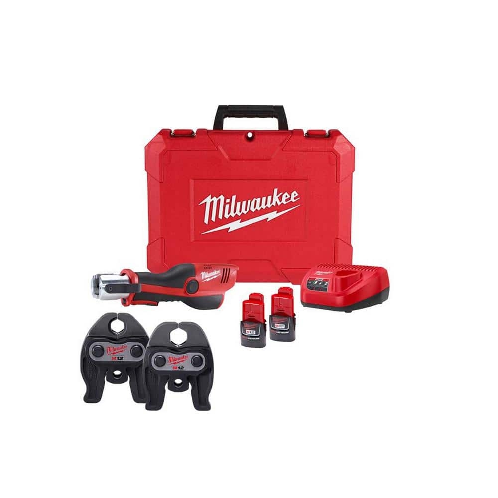 Milwaukee M12 12 Volt Lithium Ion Force Logic Cordless Press Tool 2 Jaw Kit W 1 5 Ah Battery And Hard Case 2473 20 49 16 2450 49 16 2451 The Home Depot